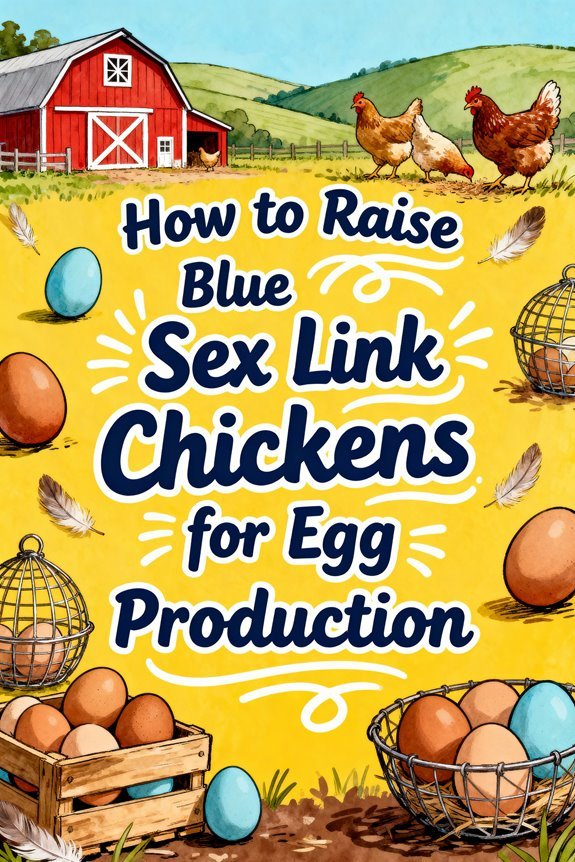 To raise Blue Sex Link chickens successfully, you’ll need 3-4 square feet of coop space and 10 square feet of outdoor run per bird. Provide starter feed (20-24% protein) for chicks, shifting to layer feed (14-16%) at 18 weeks. Maintain 14-16 hours of daily light exposure and offer calcium supplements for ideal egg production. Keep the coop between 60-75°F with proper ventilation, and implement strict health monitoring protocols. Understanding additional management techniques can maximize your flock’s 300+ annual egg potential.