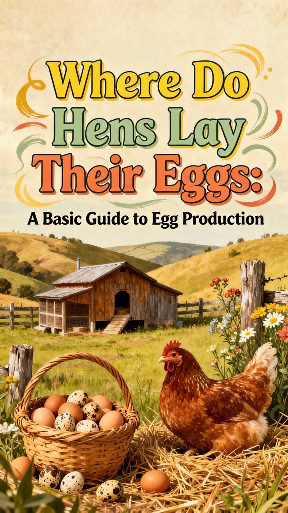 You’ll find that hens lay eggs in nest boxes you provide, but the real magic happens inside their bodies. Each egg takes 24-26 hours to form as it travels through specialized organs called the oviduct and shell gland, where calcium deposits layer by layer to create the shell. You’ll get the best results when you offer secure, comfortable nesting spaces and maintain proper nutrition with adequate calcium and protein. The factors influencing where and how your hens lay reveal fascinating details about optimizing their production.